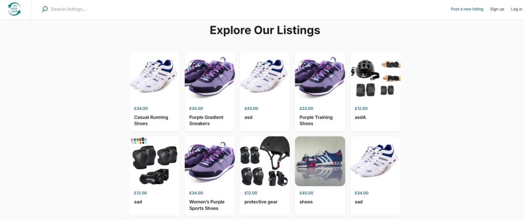 My Gear Loop offers a seamless online shopping experience built from Sharetribe where parents can browse listings, find deals, and list items effortlessly. When you visit the marketplace, you’ll find a clean, visually appealing grid view of all available listings — each dynamically updated so you’re always seeing the latest items in real time. From casual running shoes to specialized sports gear, you’ll discover a range of options for every sport and age group.