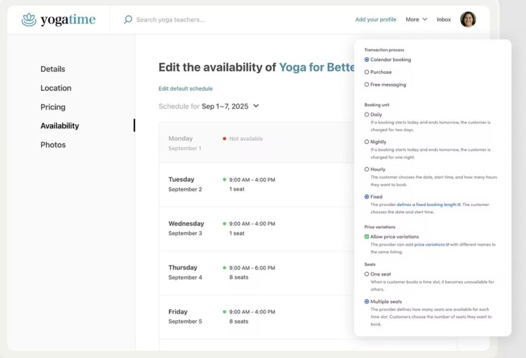 Every service category has its own booking logic. Some require hourly sessions, others need day- or night-based booking, and some work best with fixed time slots or package-based pricing. Sharetribe’s listing type system gives you the flexibility to design custom booking flows for every service type on your platform.