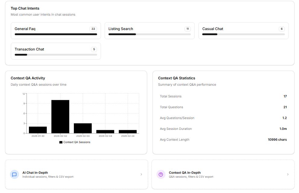 Overall, AI Chat Analytics helps ensure that the AI assistant is not just active, but truly valuable in driving engagement, support efficiency, and marketplace growth.